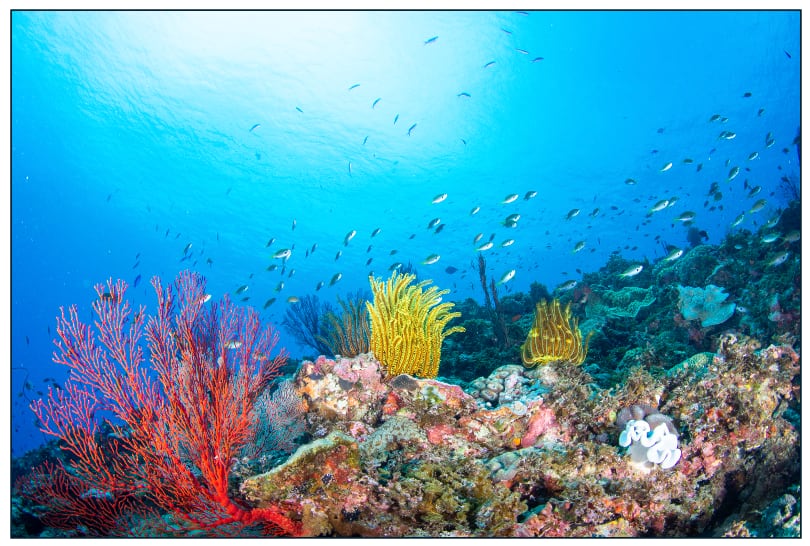 サンゴ礁がそれぞれの色を保ちながら、静かに呼吸しています。